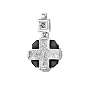 3-080-3 крест из серебра 925* литье с камнем част.чернение