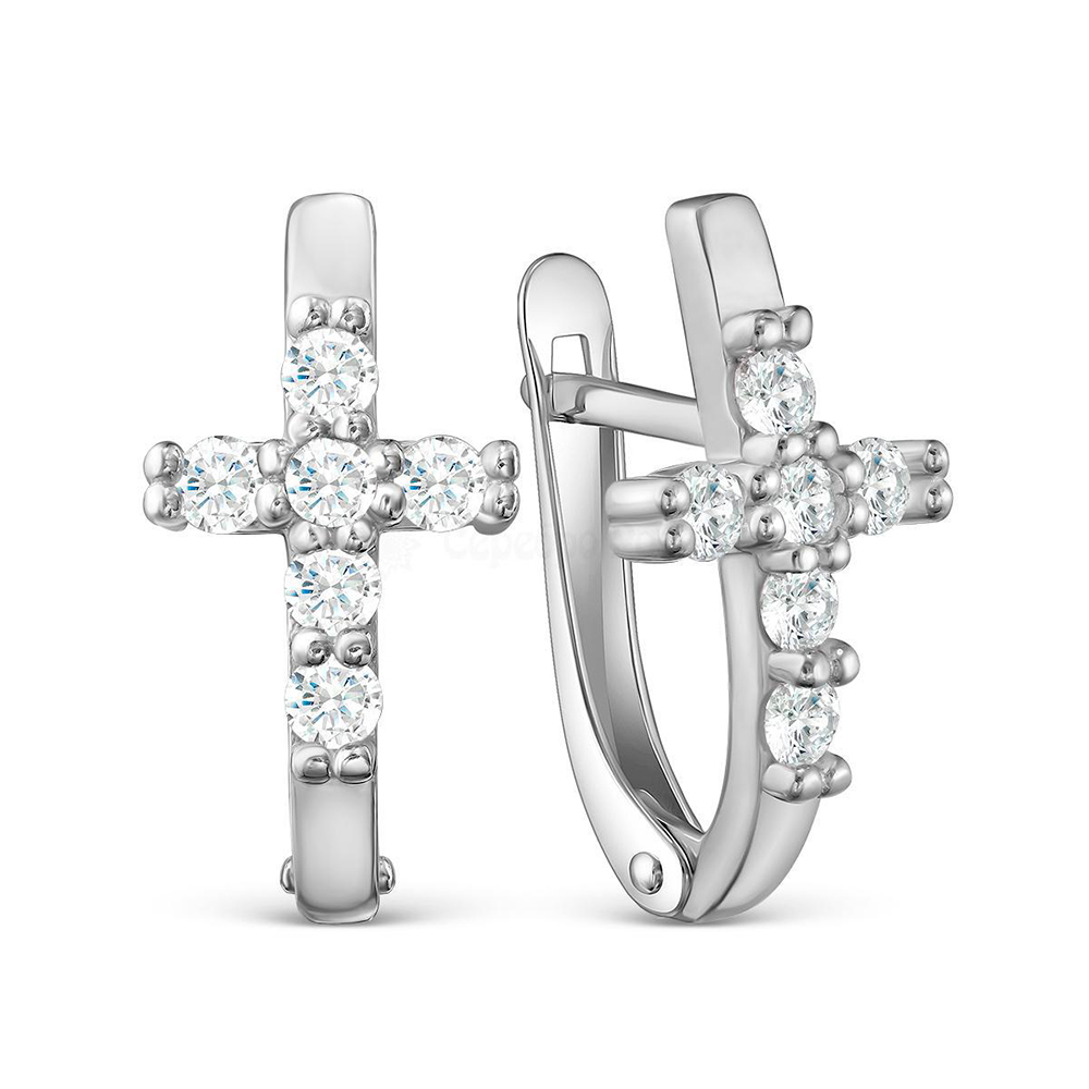 11-0792 Серьги с фианитом родированные серебро 925* 1